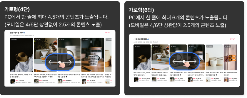 - VOD/Clip 큐레이션 설정 메뉴에서 리스트 유형을 가로형으로 설정한 경우, 4단 또는 6단 중 선택할 수 있습니다.
