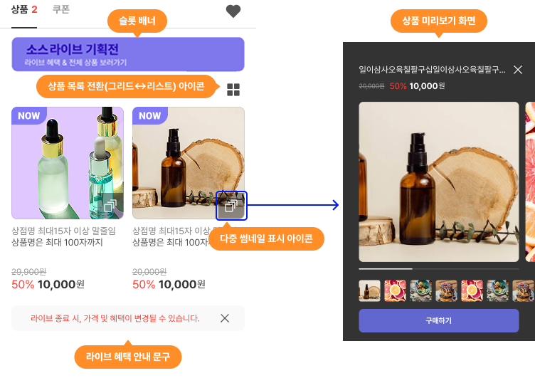 1. (개선) 소스라이브 플레이어 상품 목록 및 UI 개선
