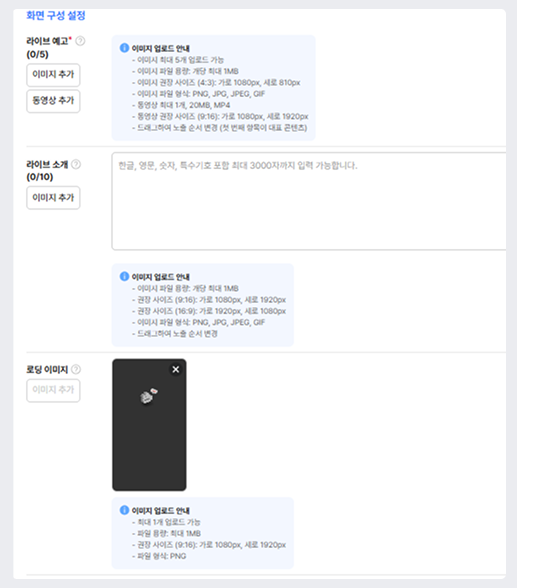 라이브 편성 시 화면 구성 설정 영역 추가