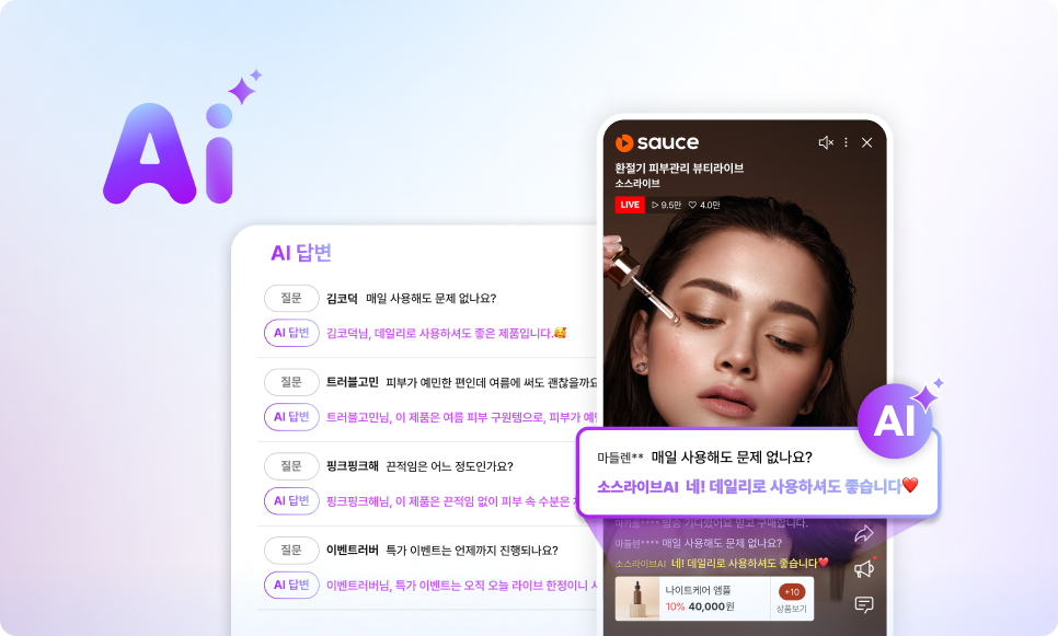 AI 활용 기능모비두는 라이브커머스 운영 환경을 더욱 효율적으로 만들기 위해 AI 기반 기능을 제공합니다. AI 활용 기능 챕터에서는 실시간 라이브와 ReLive(VOD) 환경에서 활용할 수 있는 AI 챗봇, AI 보이스의 주요 기능, 특징, 적용 방법을 안내합니다. 이를 통해 운영 효율성을 높이고, 시청자에게는 더 자연스러운 참여 경험을 제공할 수 있습니다. AI 챗봇 AI 보이스 📘사용 중 문의는 모비두 담당자 또는 카카오톡 채널로 해주세요. Updated 17 days ago 프롬프터AI 챗봇