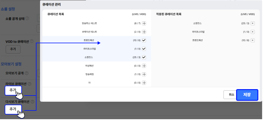 STEP 3. 라이브 종료 후 선택한 큐레이션에 VOD가 자동 포함됩니다.
