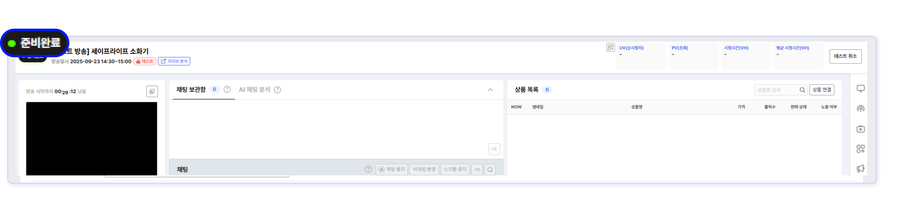 준비 완료 상태를 확인 후 송출 하세요.