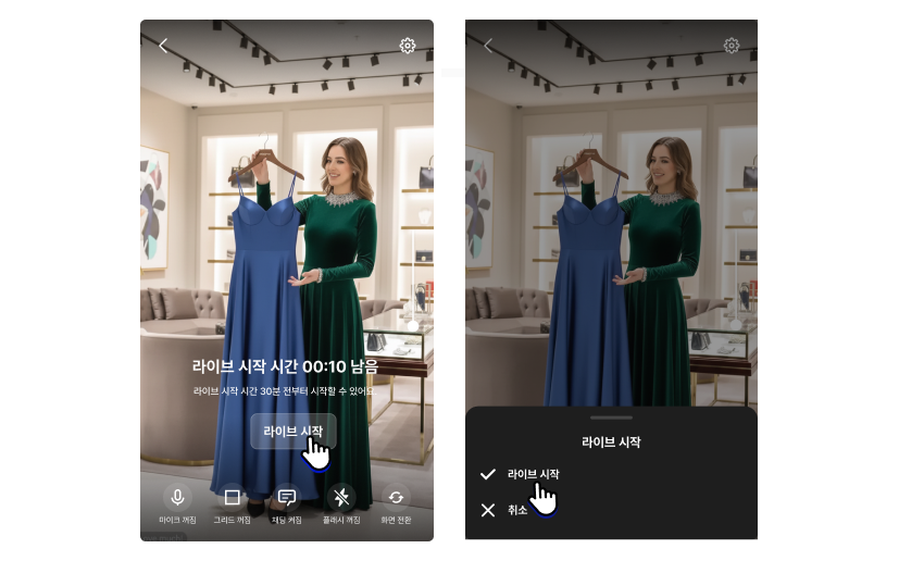 - 실제 라이브 진행은 라이브 예정 시각 30분 전부터 가능합니다. (이전에는 라이브 시작 버튼이 비활성 상태)