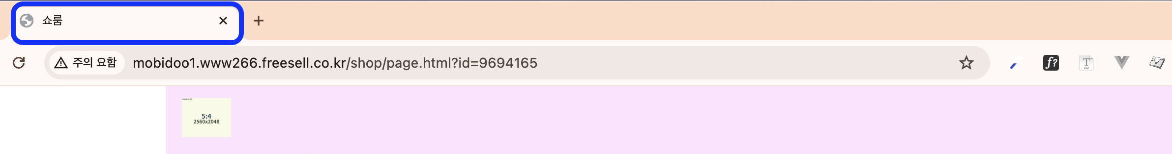 단, 페이지명은 쇼룸의 브라우저 탭 제목 영역에 동일한 이름으로 표시됩니다.고객사에서 설정을 원하는 페이지명으로 설정합니다.