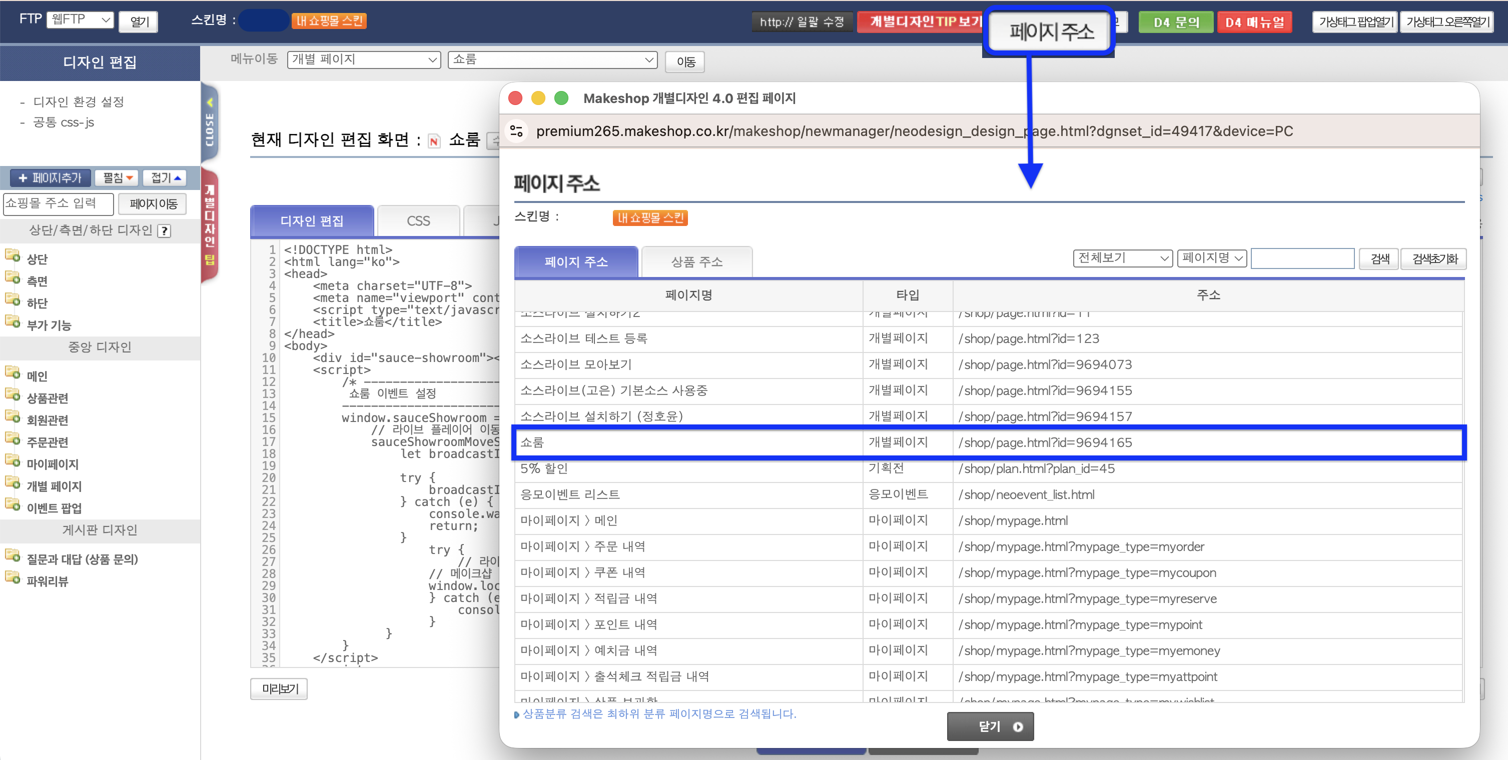 // 메이크샵 라이브설치에서 만들어진 page 주소의 id를 정확히 기입해주세요.