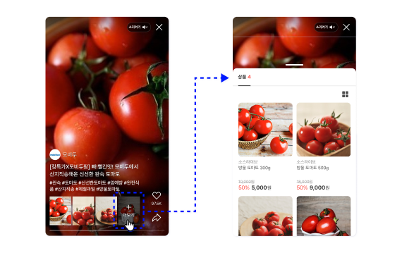 - 썸네일 클릭 시 상품 상세 페이지로 이동하고, 더보기 클릭 시 그리드형 목록이 노출됩니다.