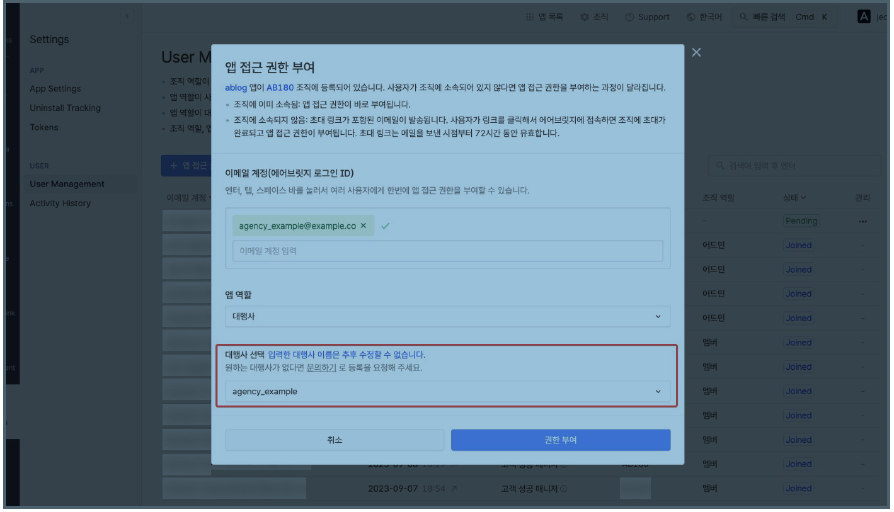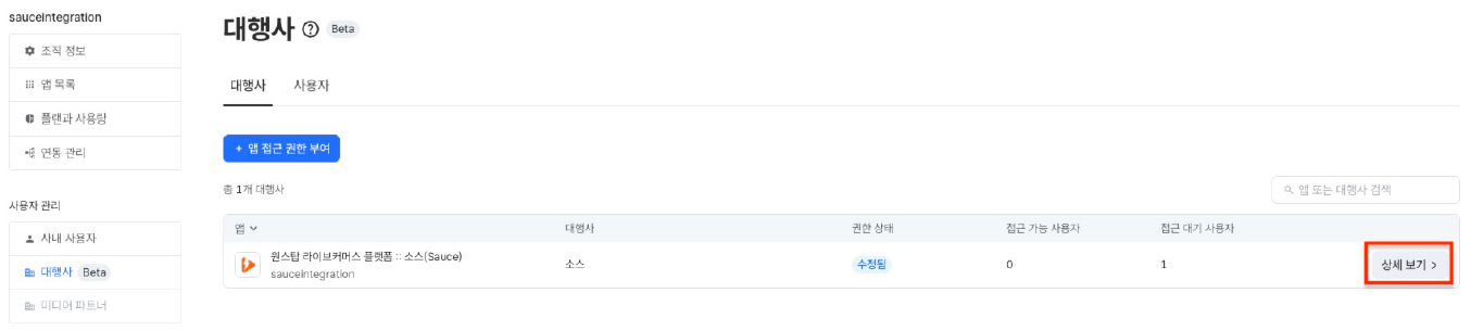 아래는 대행사에 권한 부여하는 과정입니다.