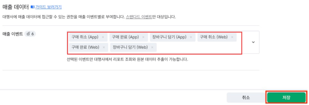 STEP 7-3. 매출 데이터의 경우, 구매 전환과 연관이 있는 6가지 이벤트를 추가해야 합니다.