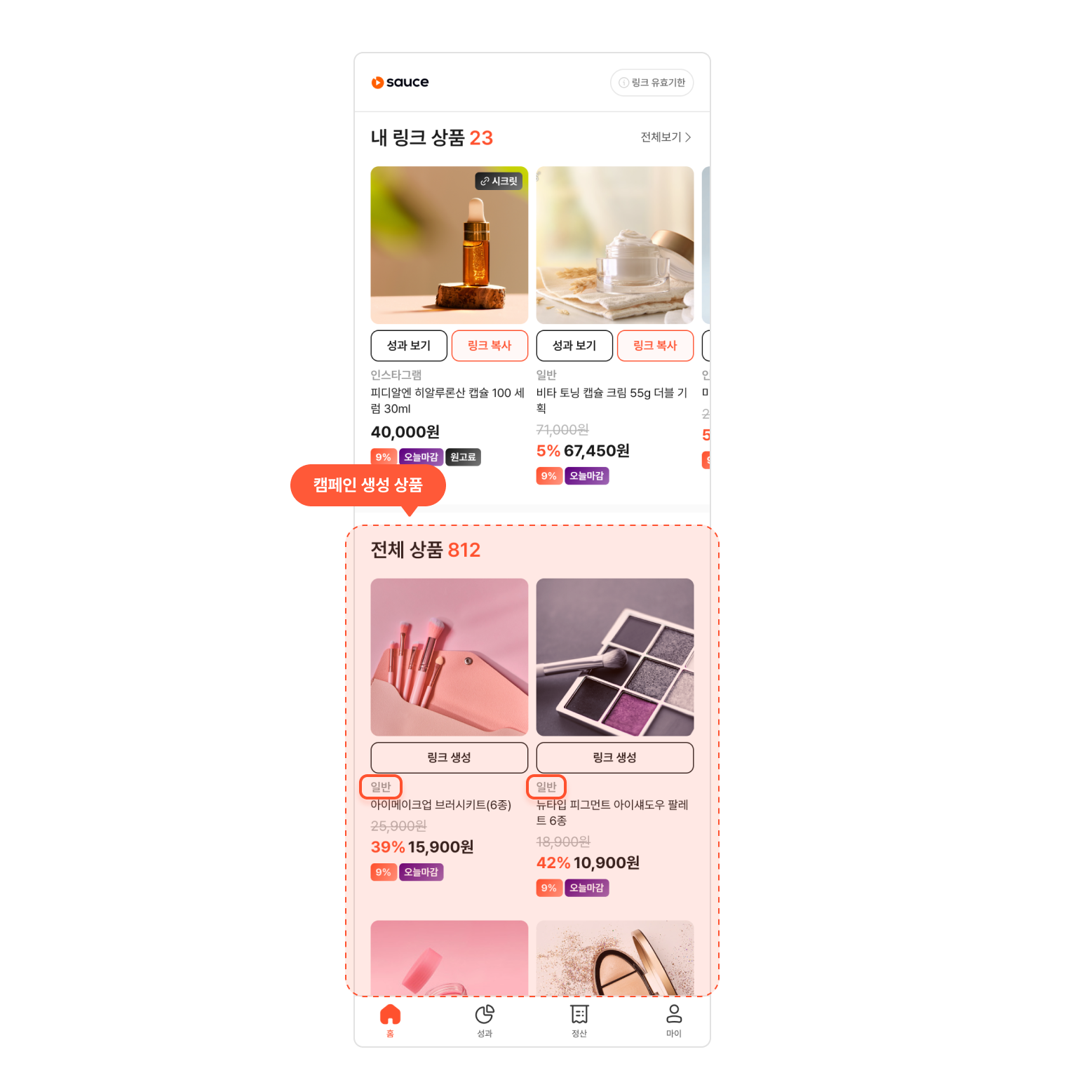 생성된 캠페인은 크리에이터 화면에서 전체 상품 영역에 자동으로 추가됩니다.