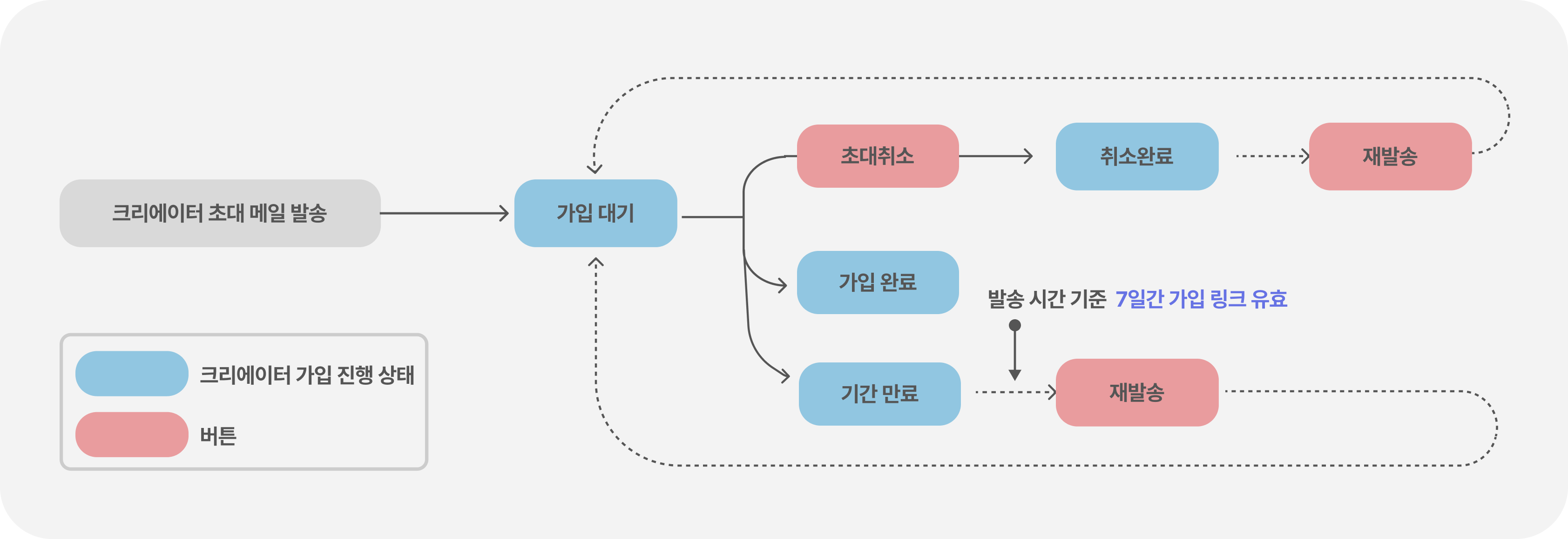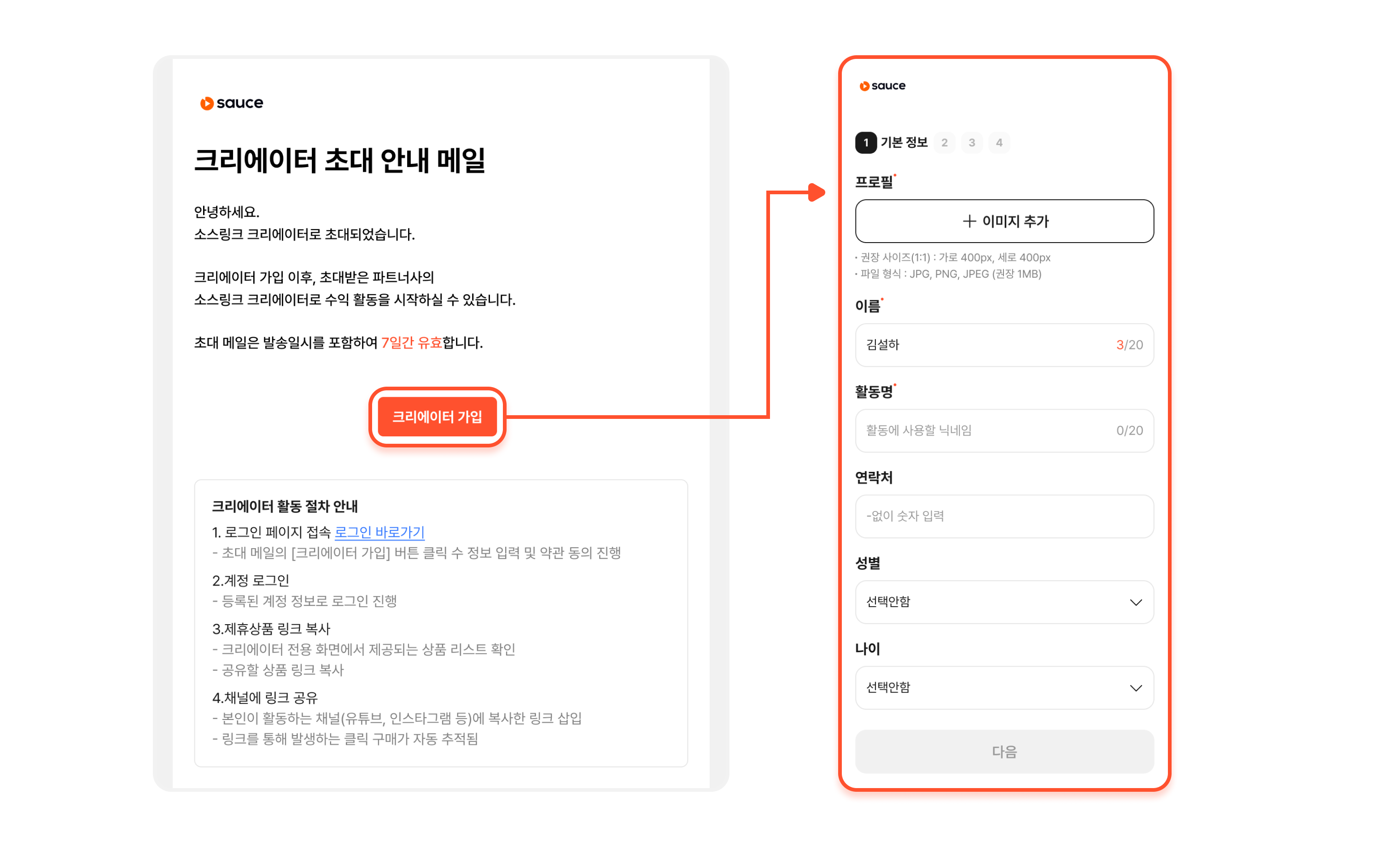 크리에이터에 초대 메일 발송 후 크리에이터의 가입에 따른 단계는 아래와 같습니다.