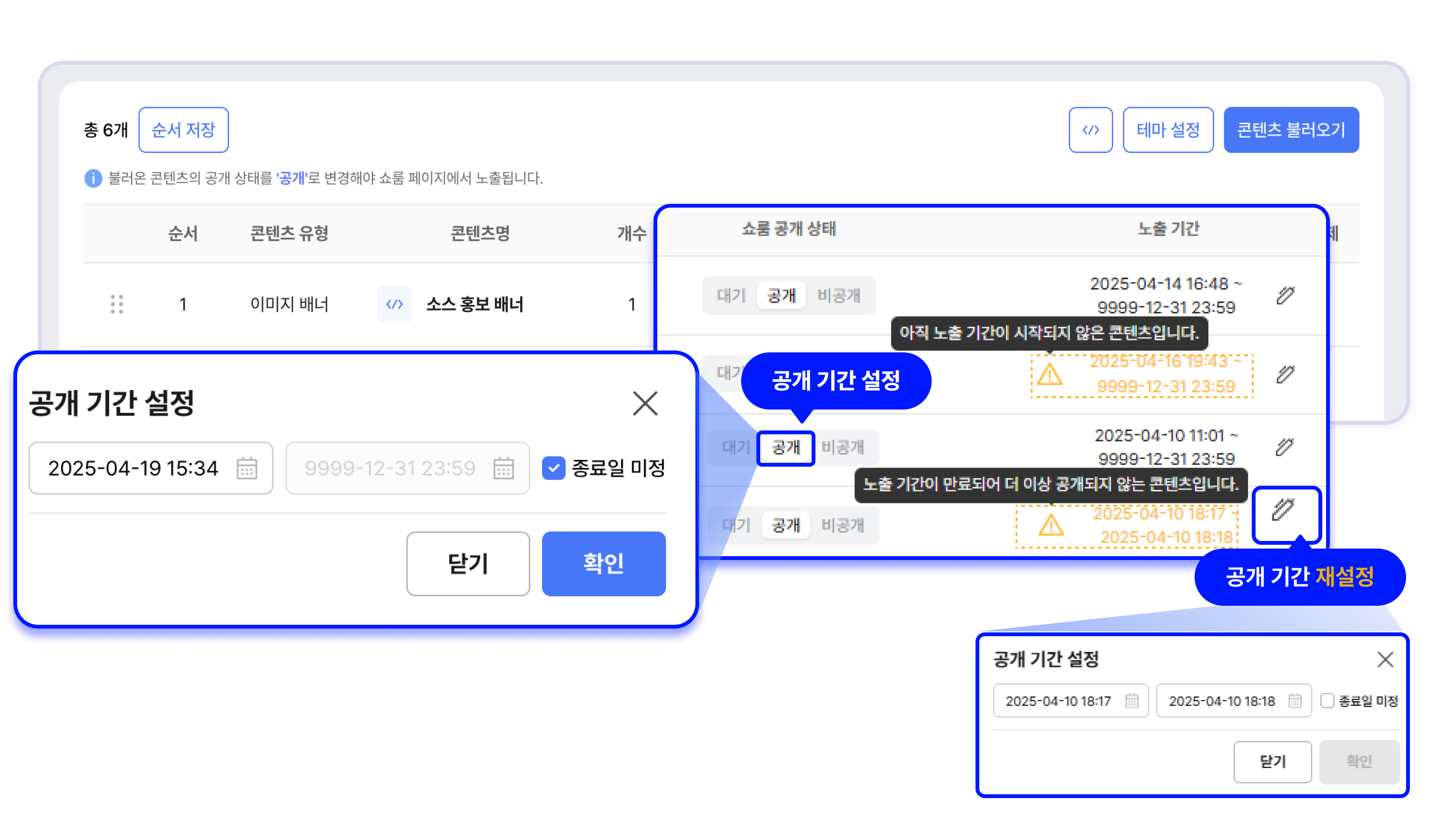 ๋ชฉ๋ก์์ CLIP ์ฝํ ์ธ ์ ๊ณต๊ฐ ์ฌ๋ถ์ ๋ ธ์ถ ๊ธฐ๊ฐ์ ์ค์ ํ ์ ์์ต๋๋ค.