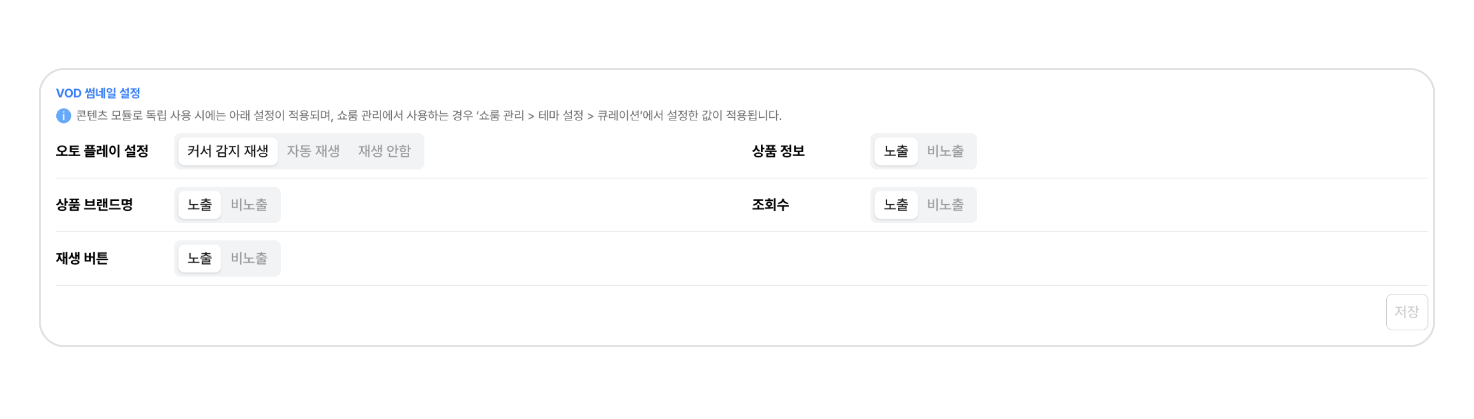 VOD ์ธ๋ค์ผ ์ค์ (์ ํ ํญ๋ชฉ - API ํ์ฉ ๋๋ ๋ชจ๋ํ ์ฌ์ฉ ์ ์ค์ )