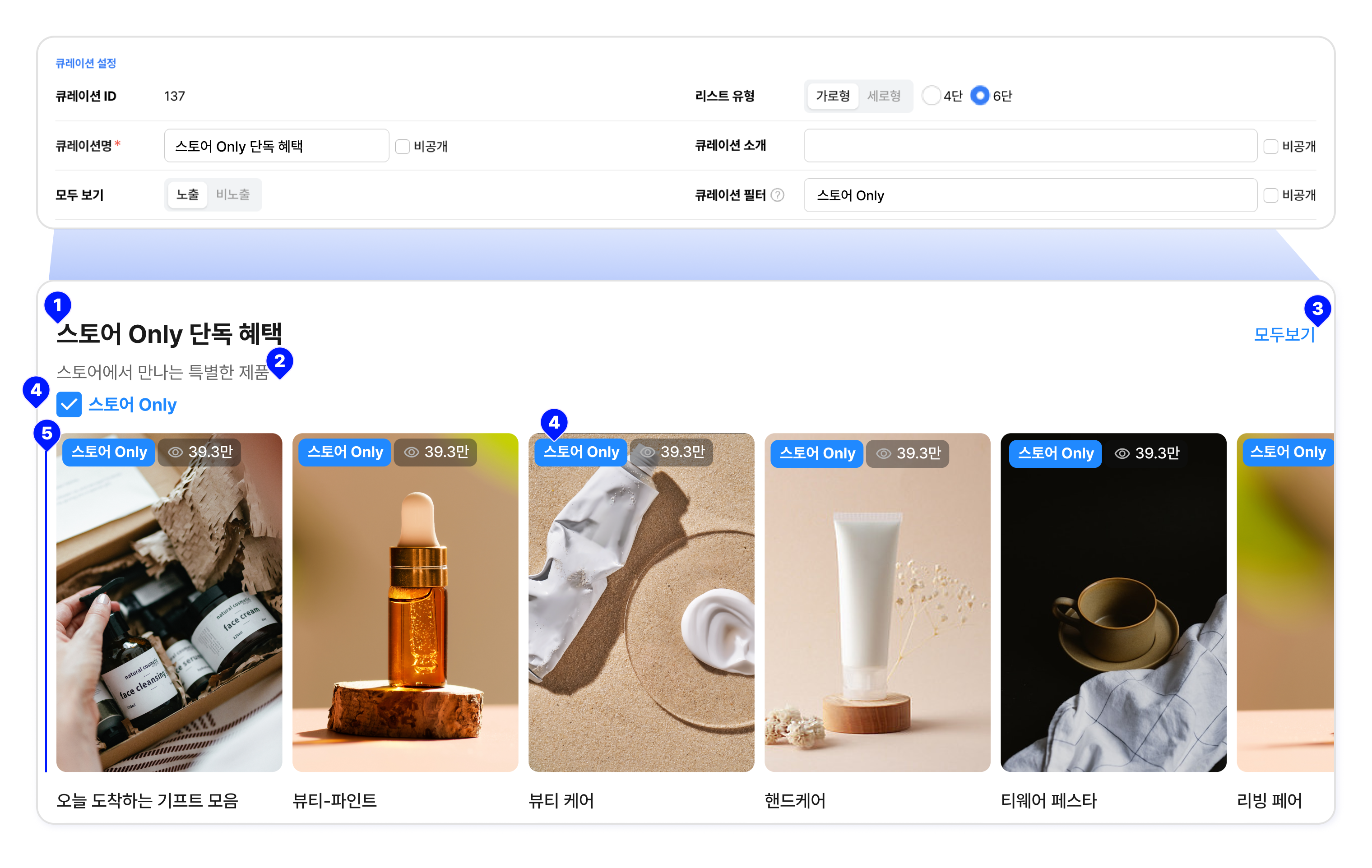 - ๋ชจ๋๋ณด๊ธฐ : ์ ์ฒด ์ฝํ ์ธ ๋ฅผ ํ์ธํ ์ ์๋ ๋ชจ๋ ๋ณด๊ธฐ๋ฒํผ์ ๋ ธ์ถ ์ฌ๋ถ๋ฅผ ์ค์ ํฉ๋๋ค.