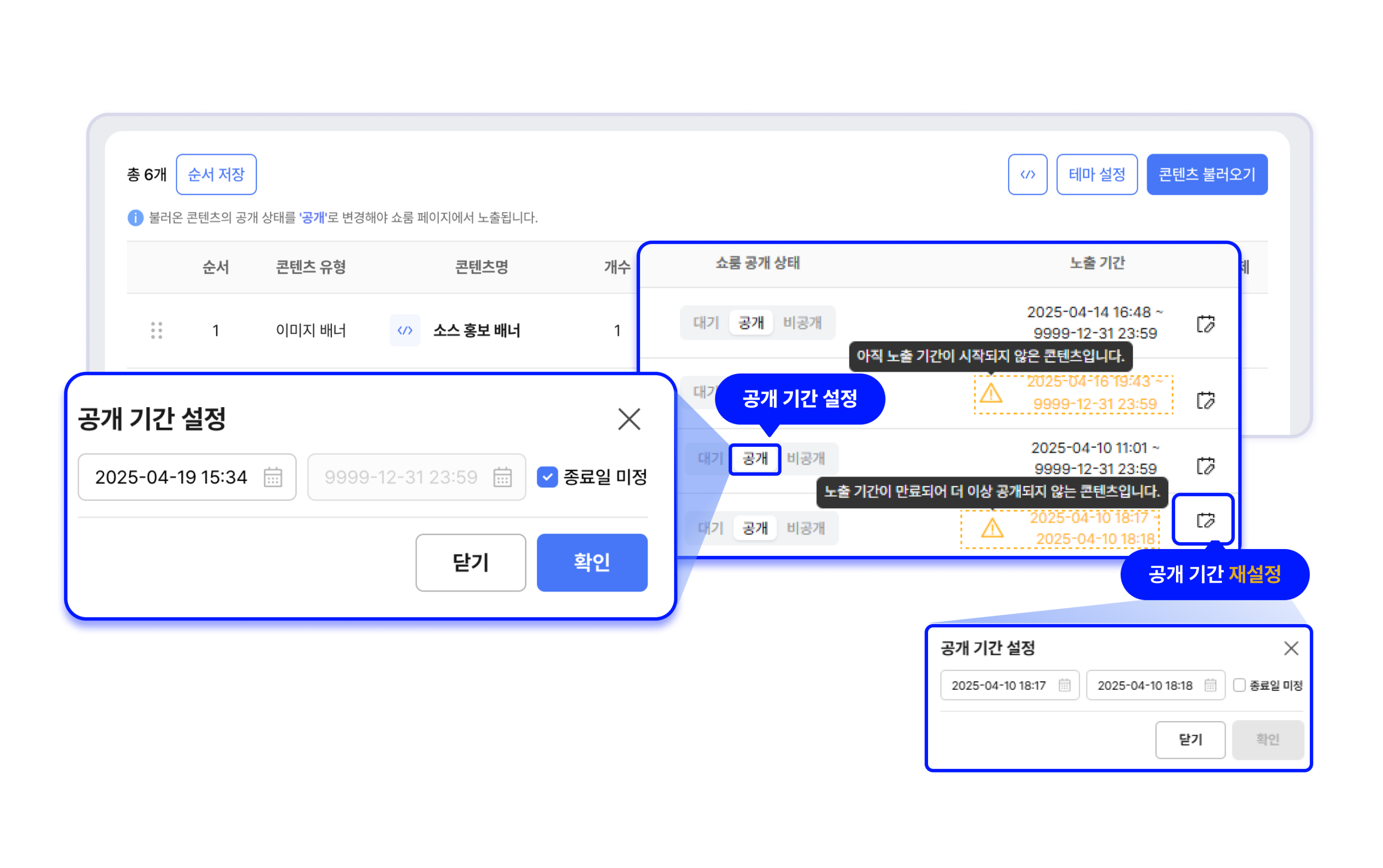์ค์ ํ ๊ธฐ๊ฐ์ด ๋๋ฉด, ํด๋น ์ฝํ ์ธ ๊ฐ ๋ ธ์ถ๋ฉ๋๋ค.